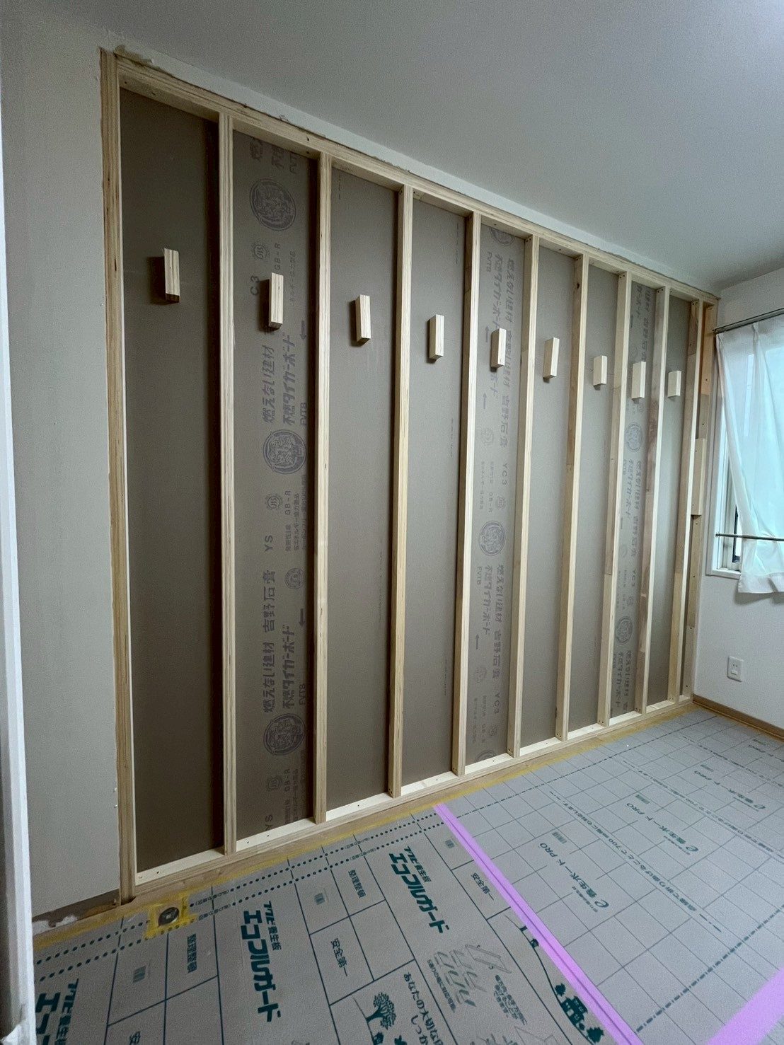 今回は、その既存壁と揃うように、厚さ7cmの間仕切り壁を新設。